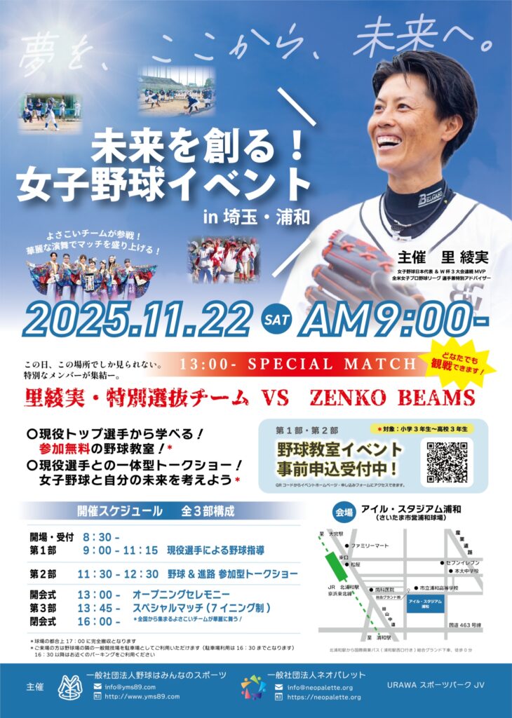 このイベントは、女子野球の未来を創り、今後の女子野球をけん引するリーダーの育成、女子野球と共に輝く未来の自分をつくることを目的としています。